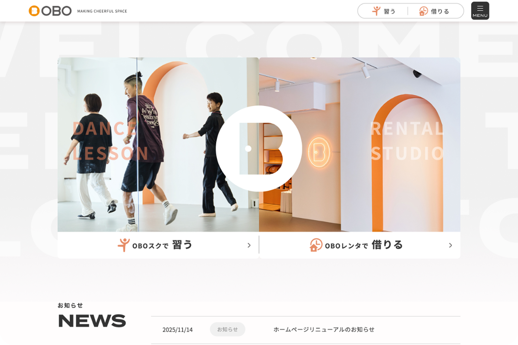 ダンススクール・貸スタジオ「OBO」様のHP制作において、コーディングおよび WordPress 化を担当しました。